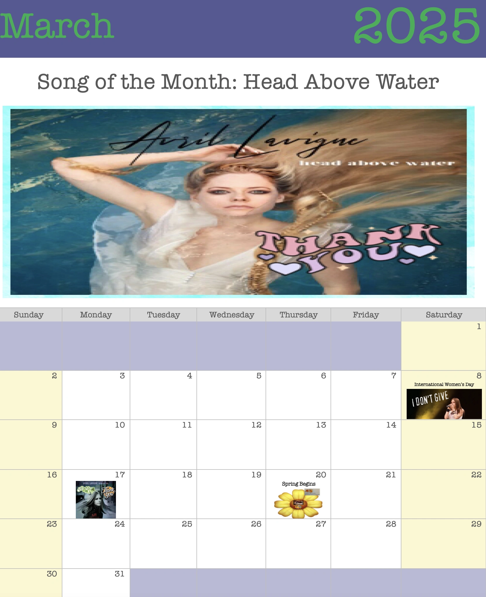 - ↑ Avril Lavigne – "Head Above Water"